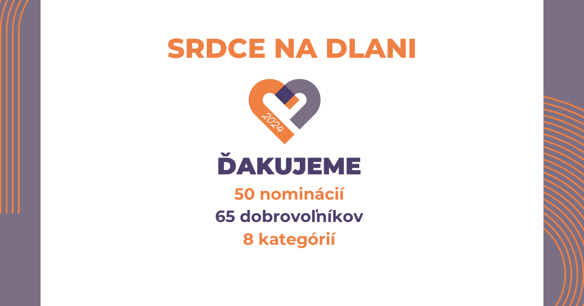 Do štrnásteho ročníka oceňovania Srdce na dlani sme prijali celkom 50 nominácií z Nitrianskeho kraja, ktoré v sebe nesú príbehy viac ako 65 dobrovoľníkov. Nominácie posielali občianske združenia, samosprávy, firmy, ale i skupiny jednotlivcov pôsobiace v celom kraji, najmä z Nitry, Hurbanova, Nových Zámkov, Levíc, Šali, Vrábel či obcí Klasov, Lehota, Veľký Kýr. Laureátov ocenenia Srdce na dlani 2024 spoznáme 27. 11. 2024 o 17.00 hod. v nitrianskej Synagóge.